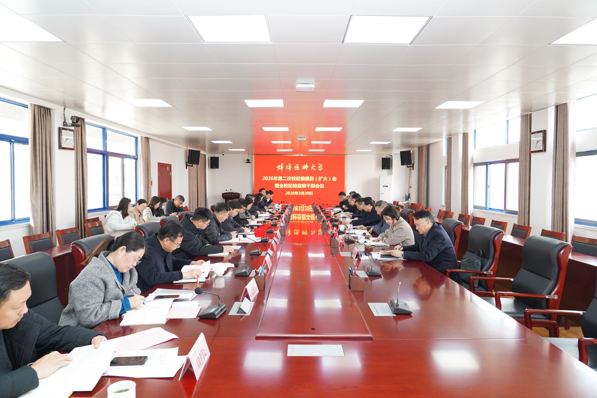 3月20日下午,学校纪委召开2026年度第二次全体纪委委员(扩大)会议暨全校纪检监察干部工作会议,深入学习习近平总书记关于树立和践行正确政绩观的重要论述,学习贯彻二十届中央纪委五次全会、省纪委十一届六次全会精神,进一步推动学校纪检监察工作高质量发展。校党委书记朱立军主持会议并讲话,全体纪委委员、二级纪委书记、二级党组织纪检委员、专职纪检监察干部参加会议。